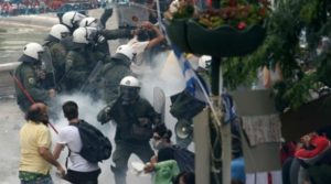 Η ώρα περνούσε όταν ξαφνικά βρισκόμενος στο τέλος της πλατείας Συντάγματος, άρχισε ομοβροντία χημικών, δακρυγόνων και χειροβομβίδων κρότου λάμψης. Μαζική και χωρίς στόχευση. Ο κόσμος πανικόβλητος έτρεχε να κρυφτεί. Και εγώ μαζί τους σε μια γωνιά Μητροπόλεως και Φιλελλήνων. Με το ένα το κινητό για να μεταδίδω με την άλλη η φωτογραφική μηχανή. Τα λεπτά ατελείωτα και μαζί το κλάμα και η δυσφορία στην αναπνοή. «Θα αντέξεις» έλεγα στον εαυτό μου δίνοντας κουράγιο. Βλέπω μέσα από την στοά του υπουργείου Οικονομικών πίσω από τα ΜΑΤ να βγαίνουν κουκουλοφόροι με καδρόνια στα χέρια. «Πάγωσα».